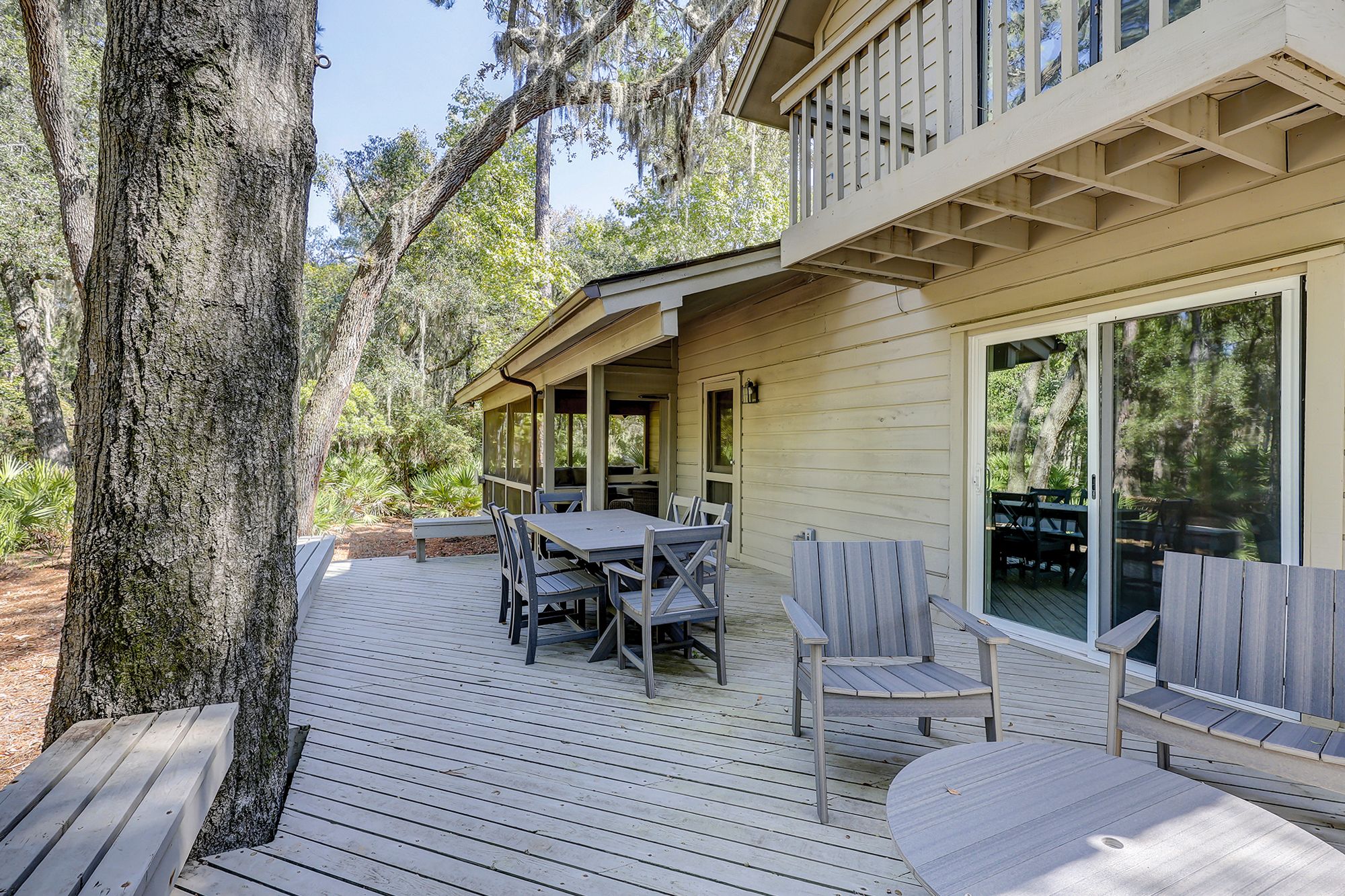 Bring your fishing poles to spend your days catching red fish off of the private dock. While the property doesn’t have a pool, the outdoor space is perfect for enjoying the fresh ocean air. A private backyard features a large deck with outdoor dining, ideal for summer barbecues or an evening relaxation under the stars.