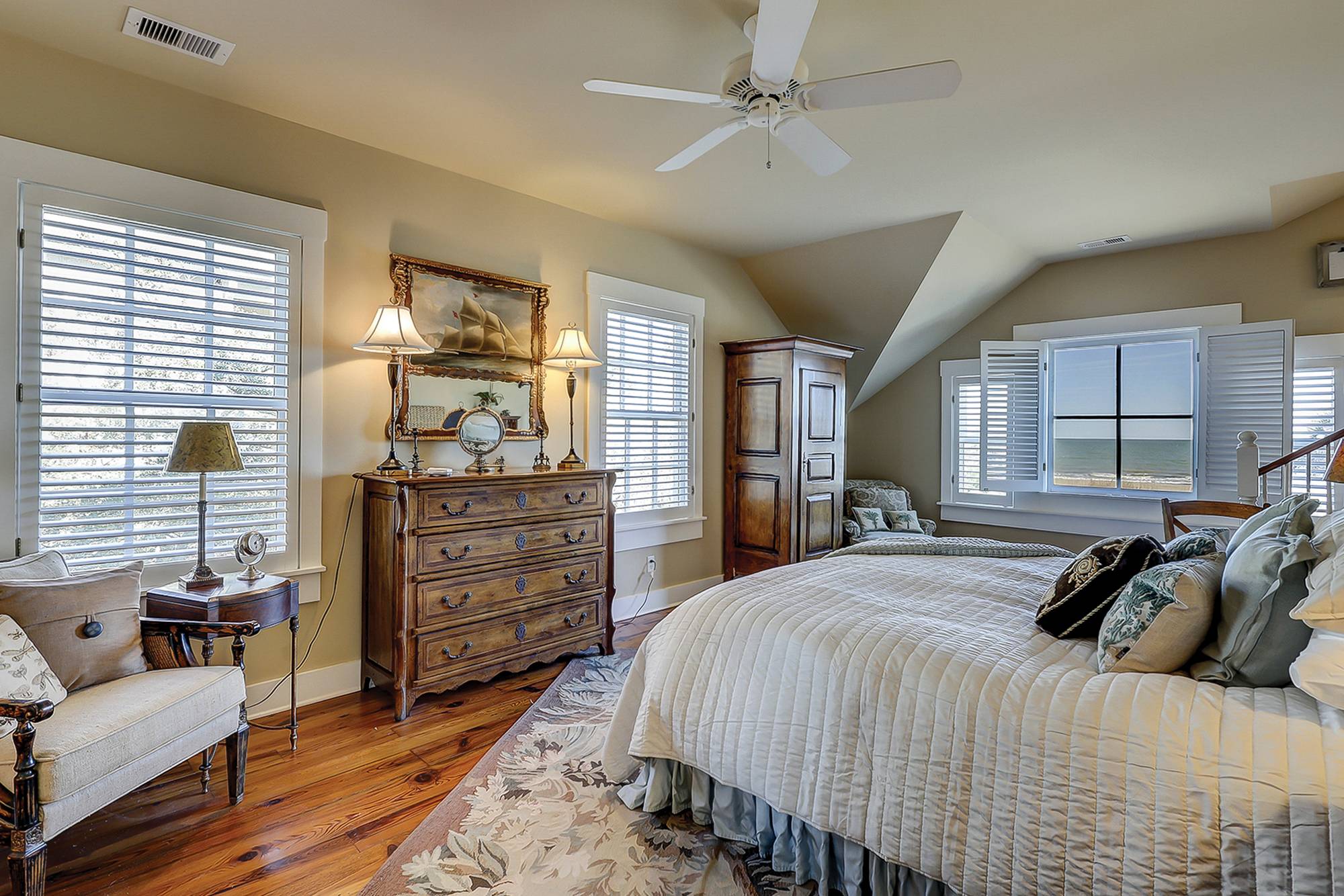- King bedroom with private bath and direct access to ocean view balcony