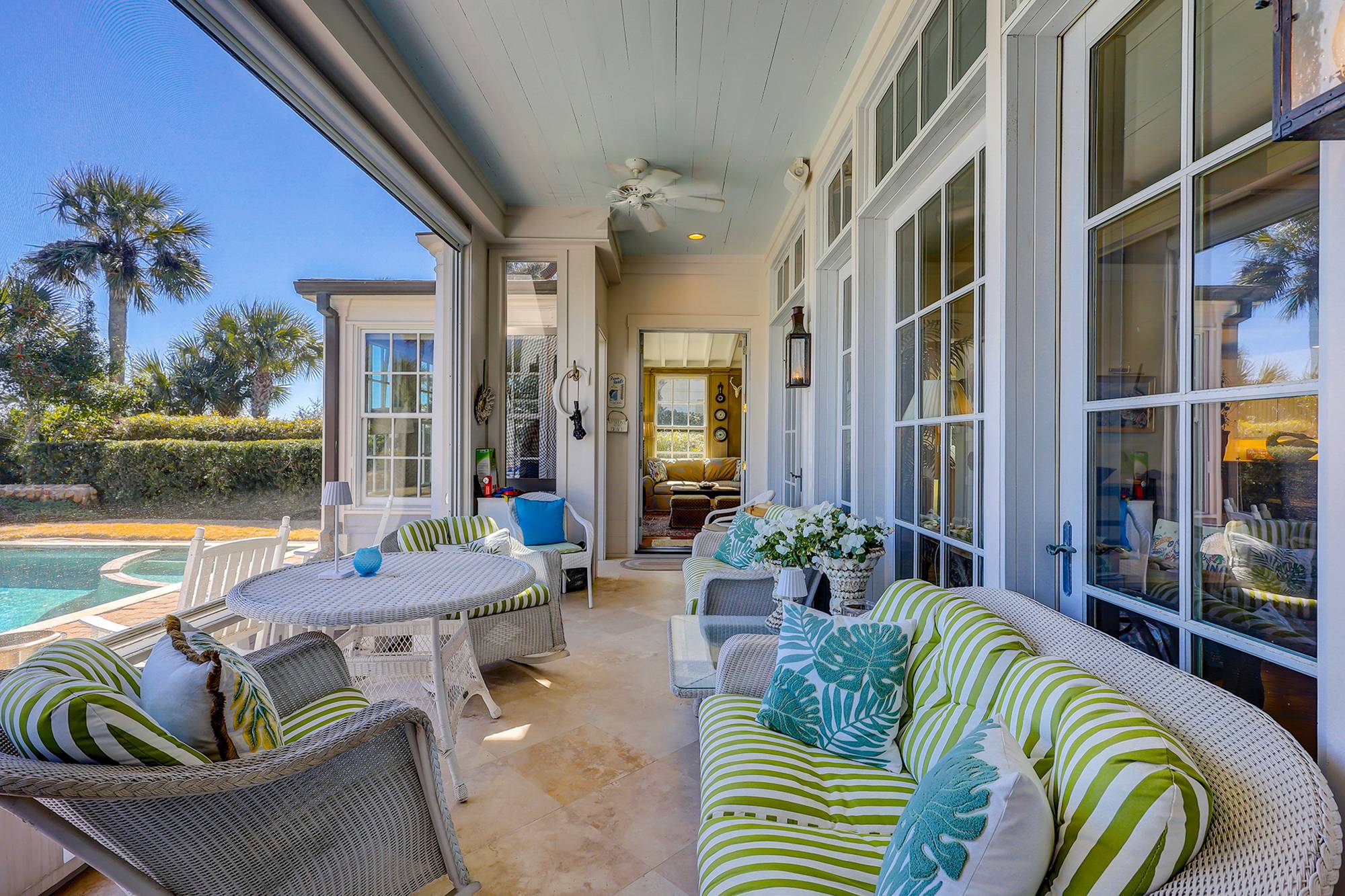 - Open plan kitchen leading to a relaxing den and large screened in porch